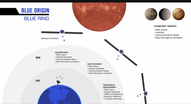 In a presentation to a National Academies committee last October, another Blue Origin official, Erika Wagner, also mentioned the project, calling it Blue Ring. That included a chart showing various roles for Blue Ring in Earth orbit and at “planetary targets” that include many of the same capabilities in the new company announcement. The company at the time did not respond to questions about the program.