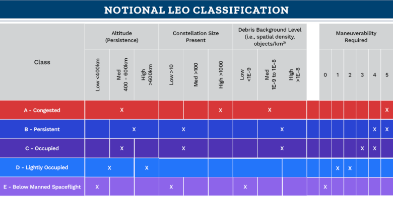 Another Mitre paper suggested altitude-based classes for low-Earth orbit along the lines of aviation airspace classes.