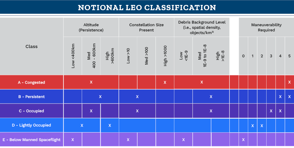 “Like aviation, classification is not only a safety tool but can also be used as a means to increase carrying capacity of a defined orbital volume,” Stillwell said.